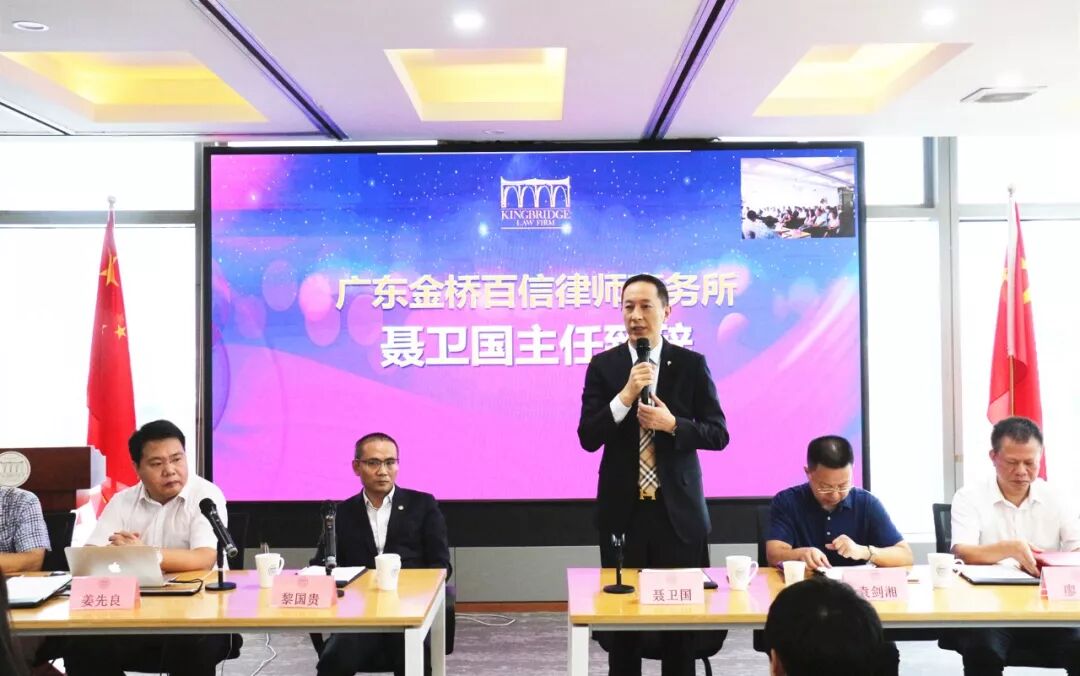 为顺应经济全球化的发展趋势,落实全面依法治国、“一带一路”的国家战略,全面提升律师服务企业的能力,满足企业日益增长的合规风险防范需求,及时帮助企业排除生产经营过程中的堵点、风险点,提升企业竞争力,金桥百信经过两年多的酝酿和准备,于2019年8月30日正式成立企业合规中心。本次会议有幸邀请了北京中闻律师事务所合伙人、中律联企业合规研究院姜先良院长和广州大学法学院院长邵维国教授出席本次会议,我所主任聂卫国律师、党总支书记黎国贵律师、高级合伙人廖莘律师、合伙人袁剑湘律师、李先映律师以及来自广州、深圳其他律师事务所的同行参加该次成立大会。